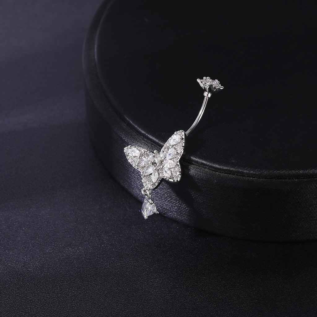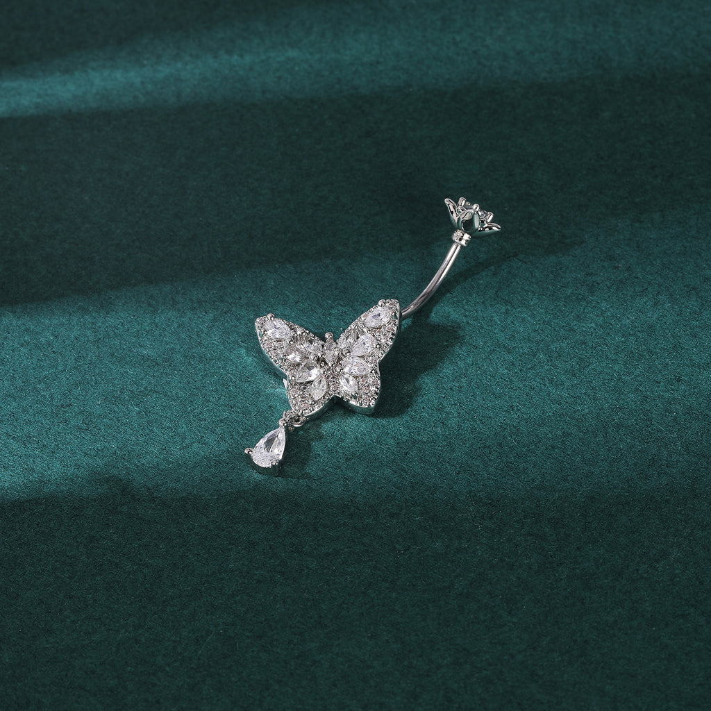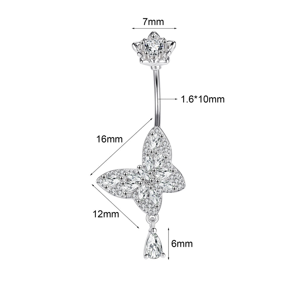 14g Butterfly Crystal Belly Button Rings Water Drop Zirconia Banana Belly Navel Piercing