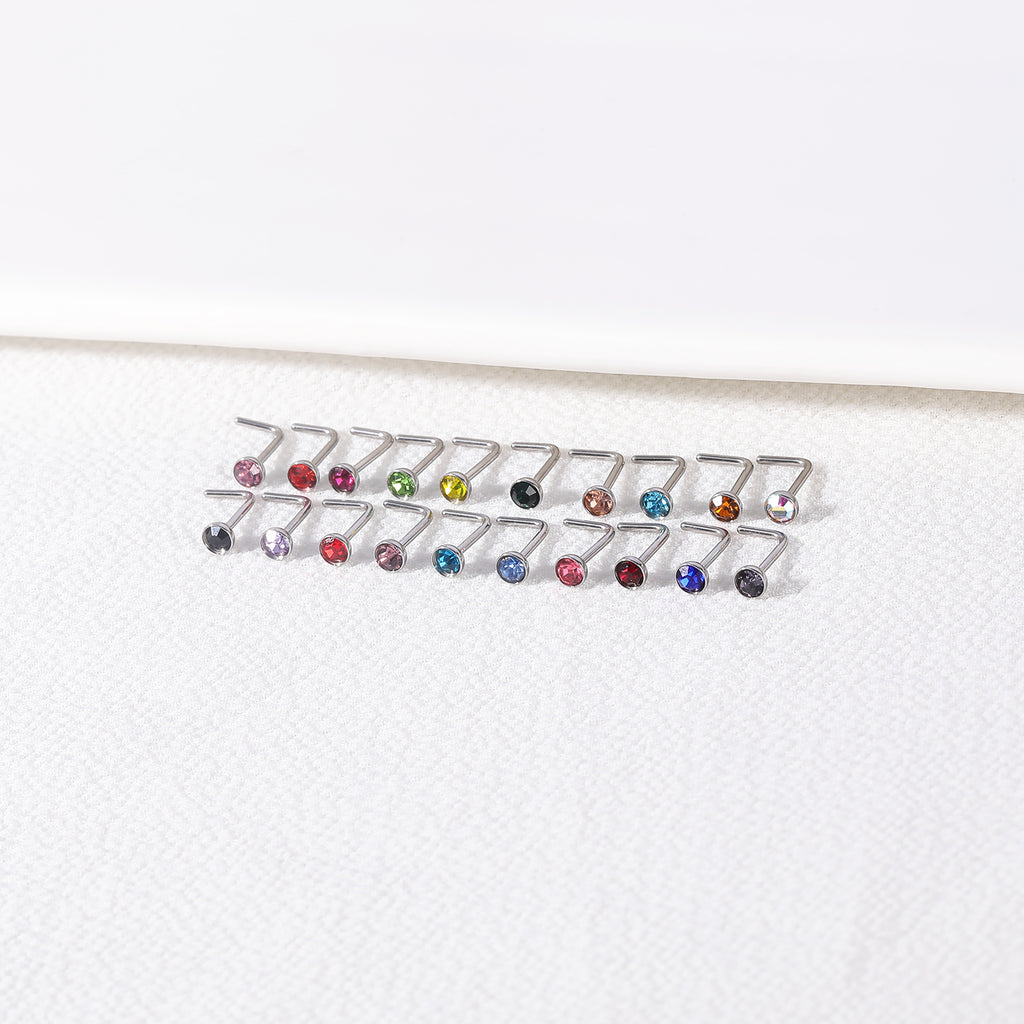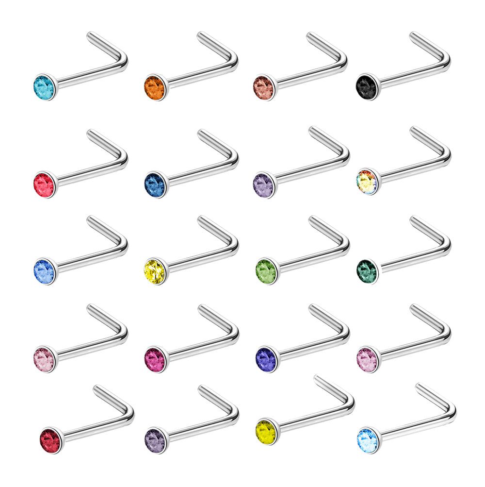 20Pcs/Set 20g Crystal Nose Pin Piercing L Shape Nose Stud