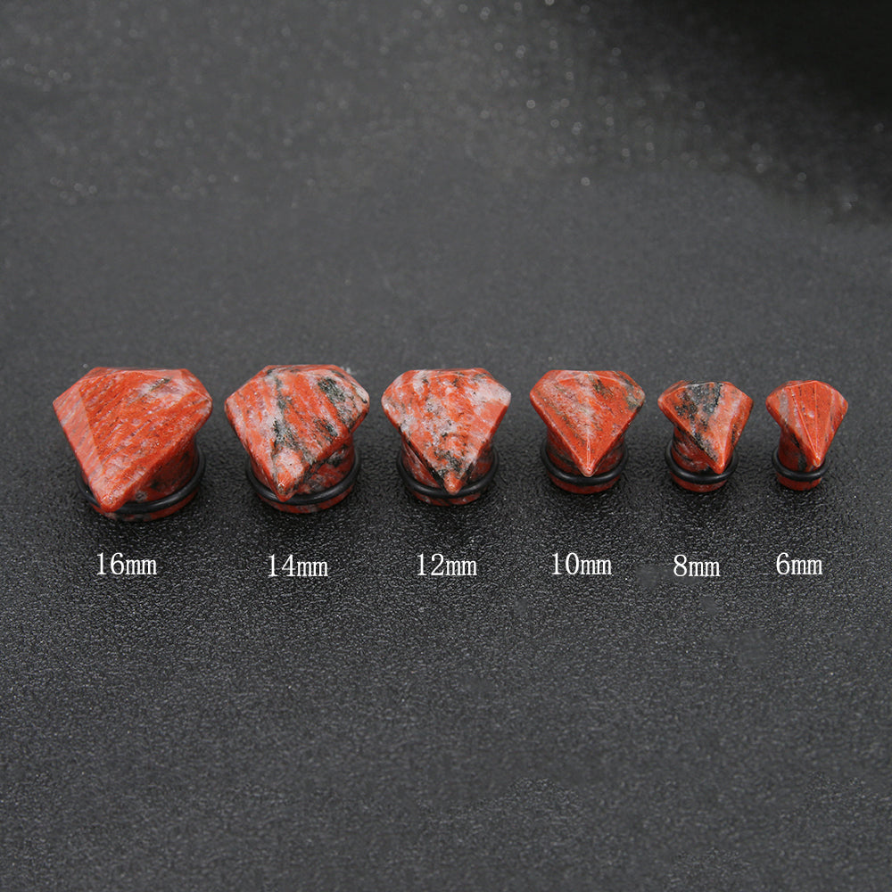 - Unique Design: Diamond-Shape Solid Stone Single Flared Ear Plugs with Black Silicone O-Ring Fasten. Can Create Your Own Unique Ear Piercing and Release Your Personal Charm.