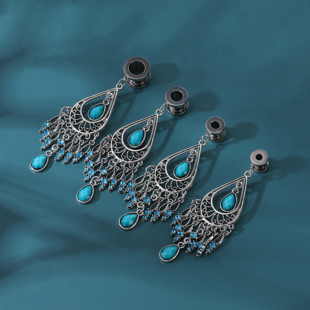 1 Pair 5-10mm Water Drop Retro Celtic Style Dangle Tunnels Ear Gauges