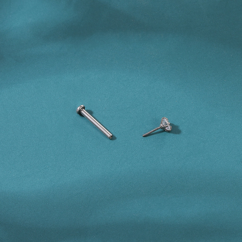 18g/20g Shiny Zircon Nose Stud Flat Back Nose Ring Internal Thread Nostril Piercing