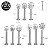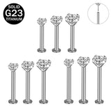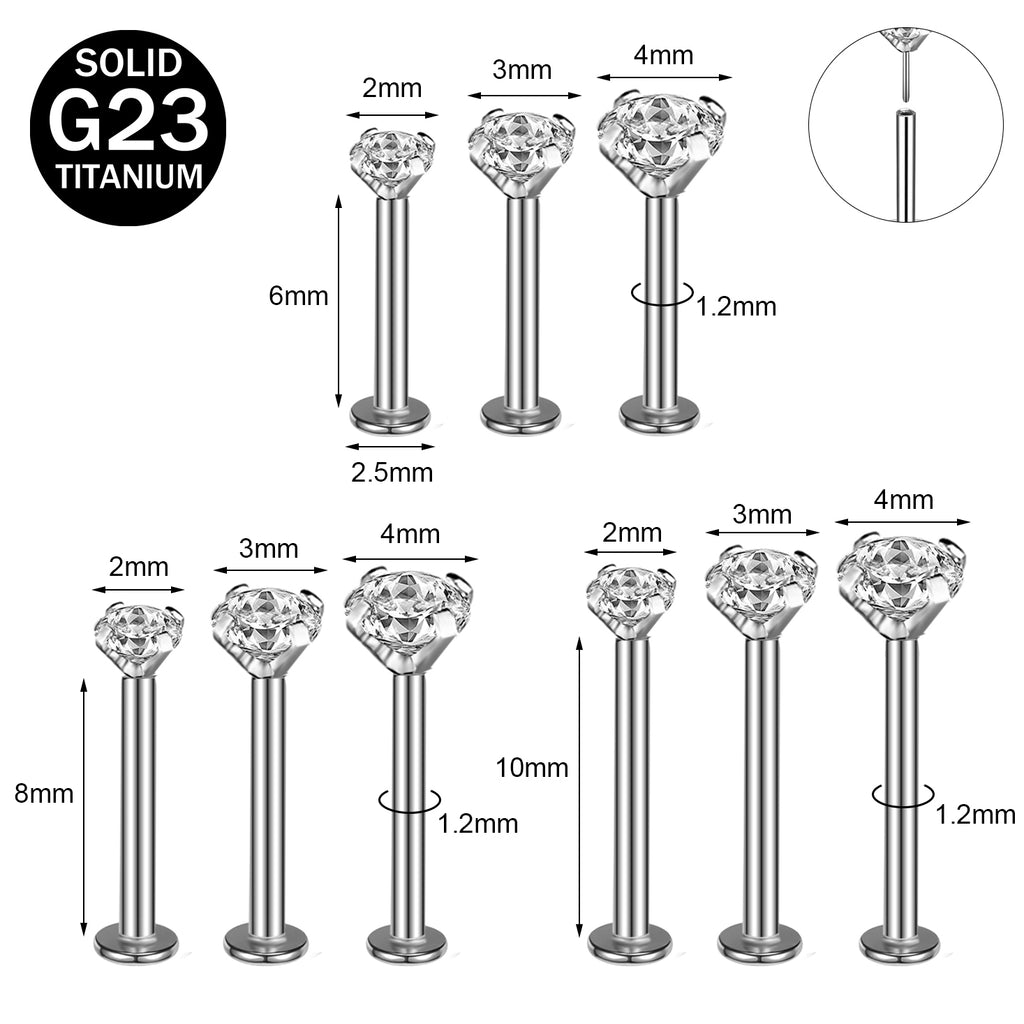 16G Push in G23 Titanium Labret Rings Simple Zirconia Tragus Helix Conch Piercing