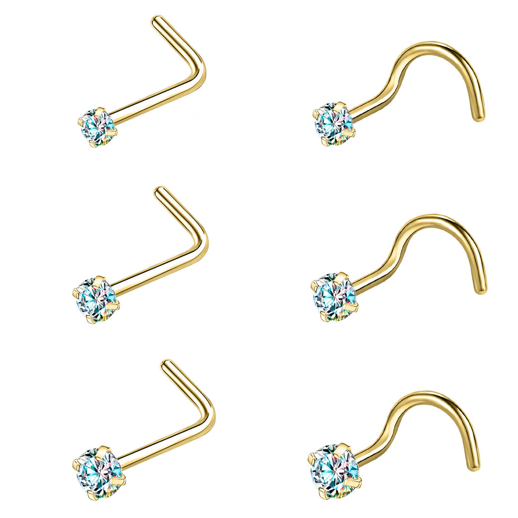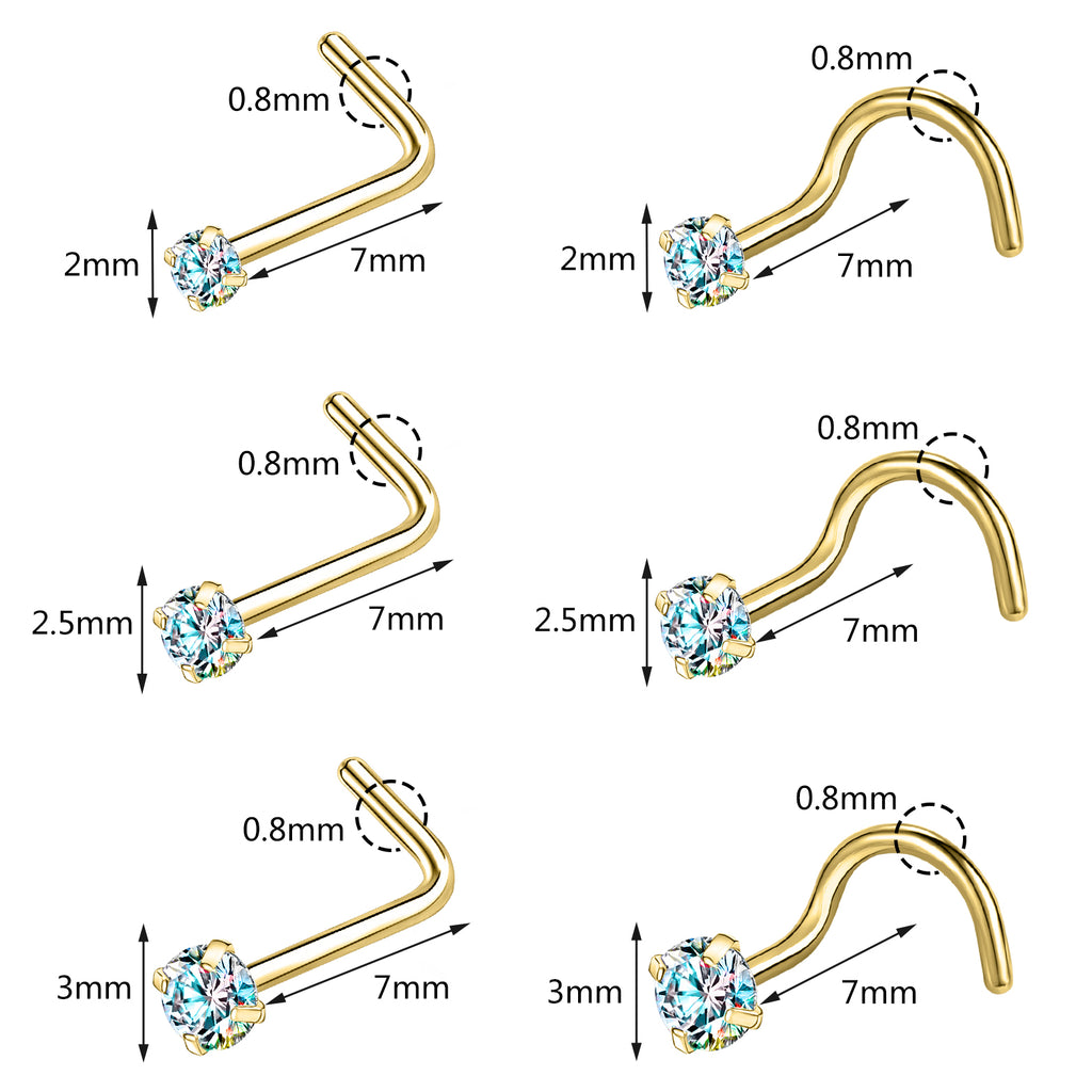 - Piercing Type: L Shape and Nose Crokscrew, Stone: prong setting with Cubic Zirconia.
