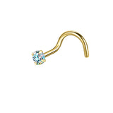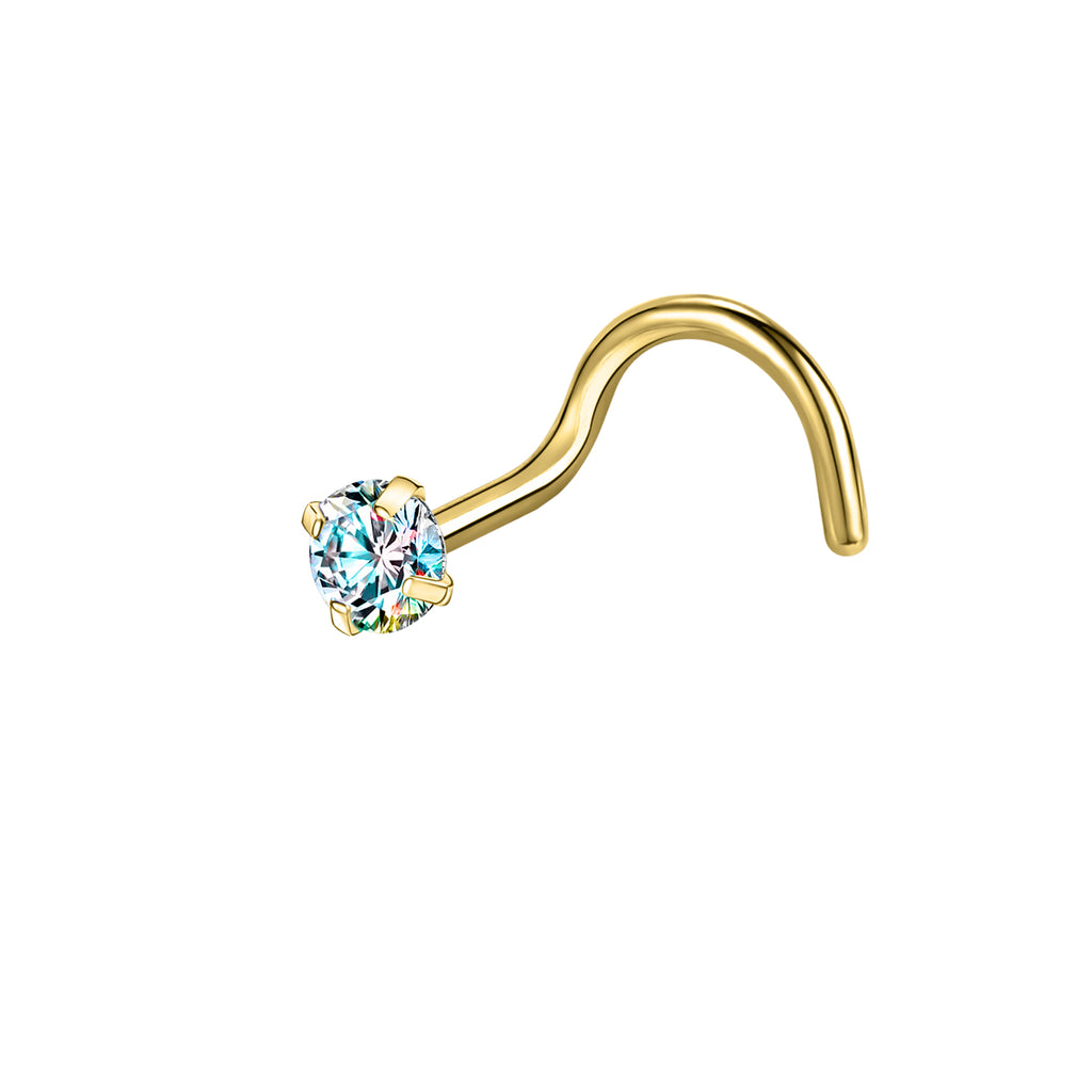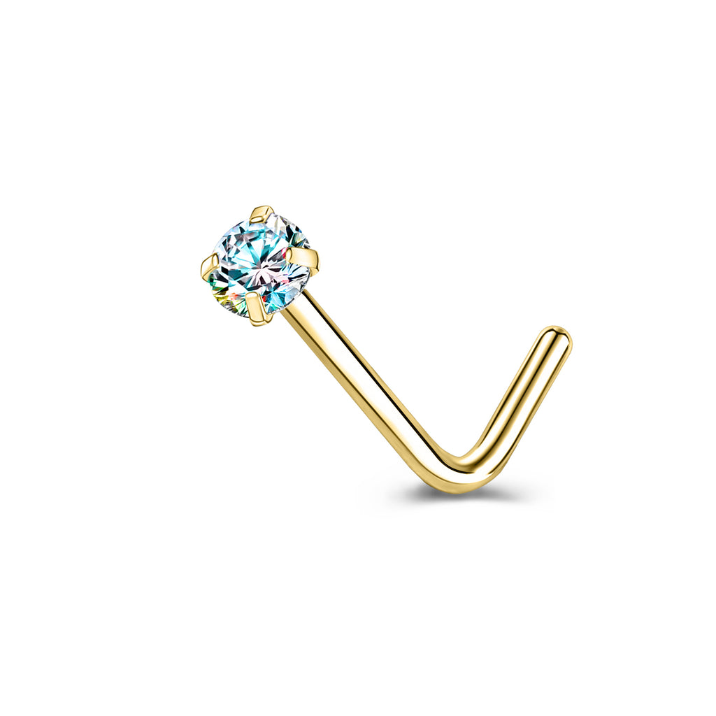 20g AB Crystal Nose Studs Piercing Gold Plated L Shape Corkscrew Nose Ring
