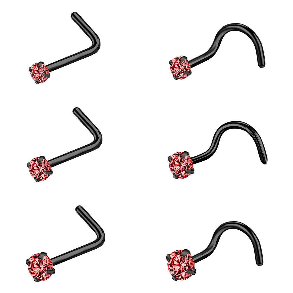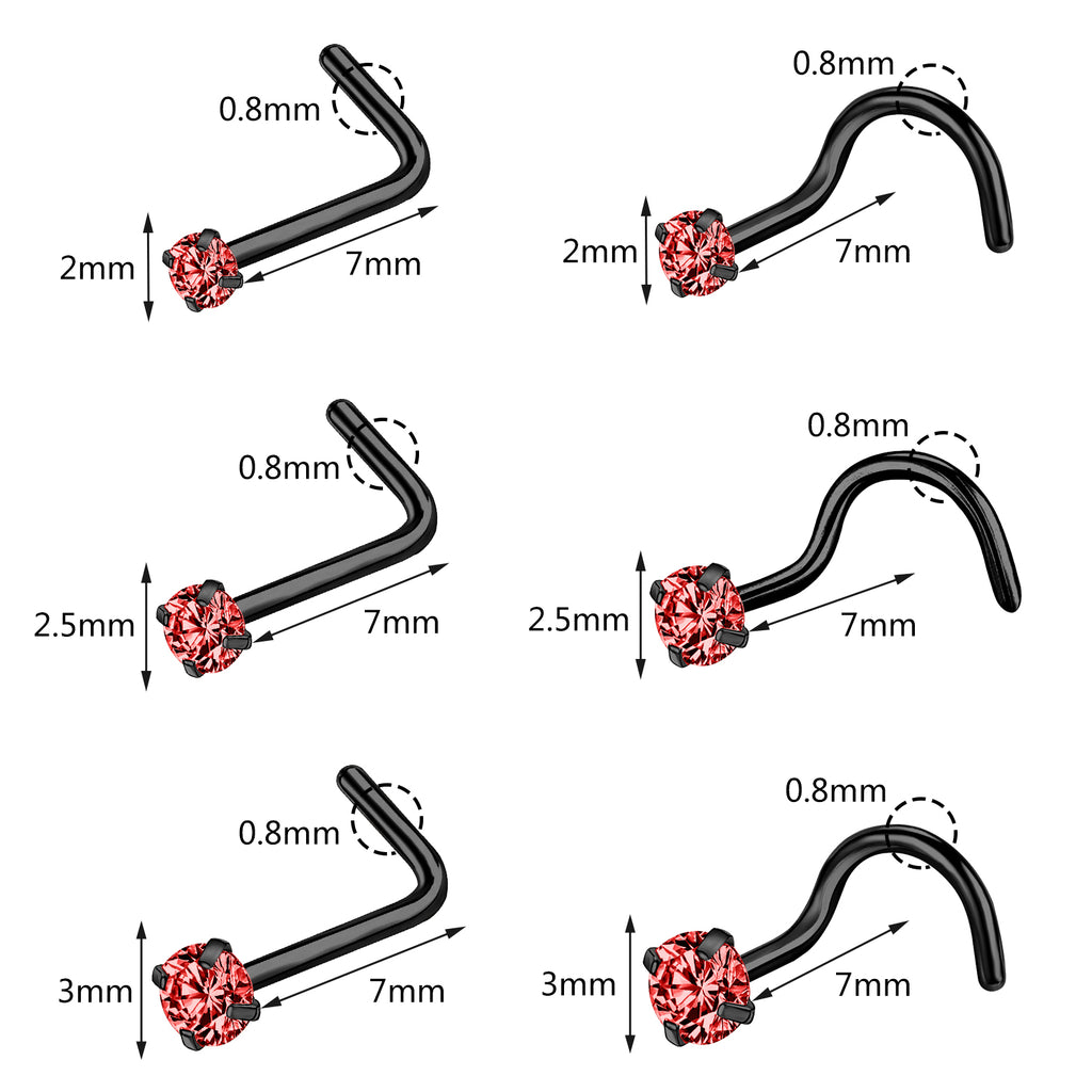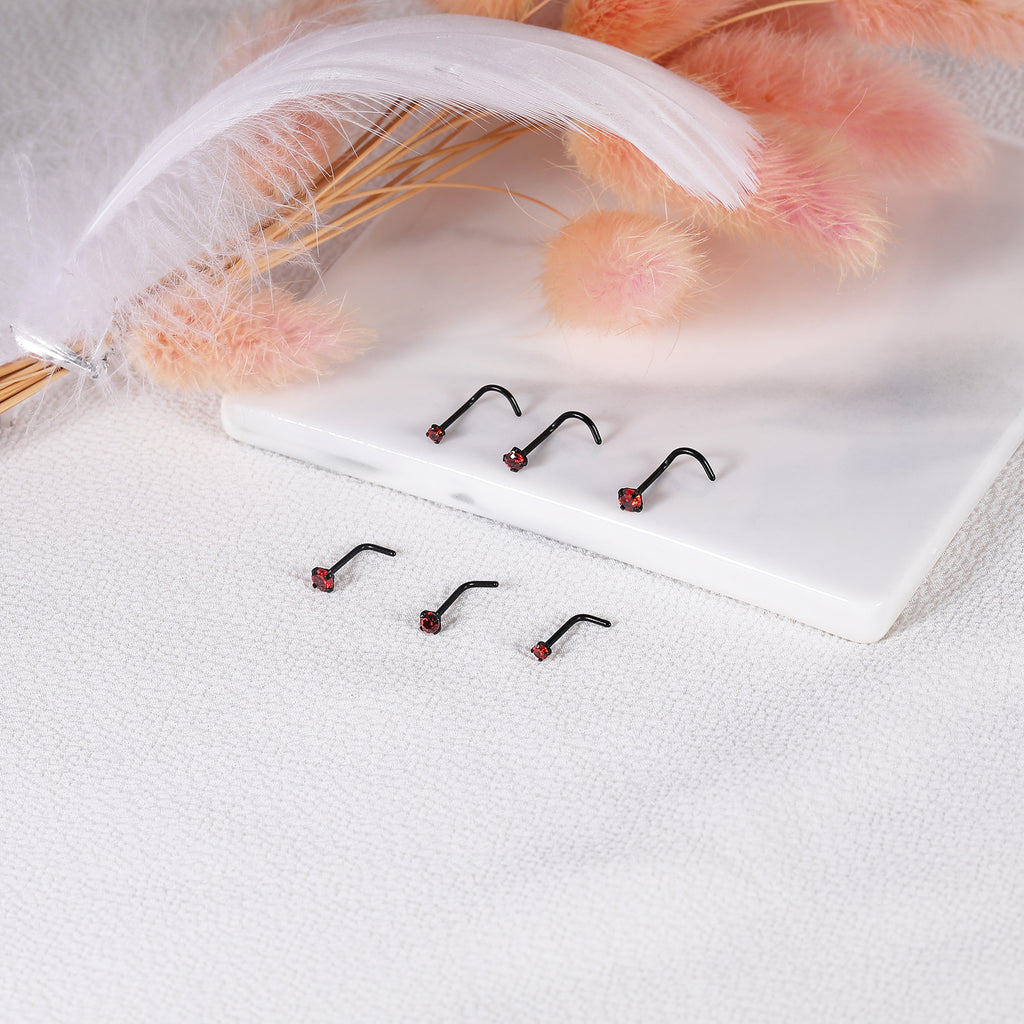 20G Red Crystal Nose Rings L Shape Nose Ring Black Nose Corkscrew Piercing