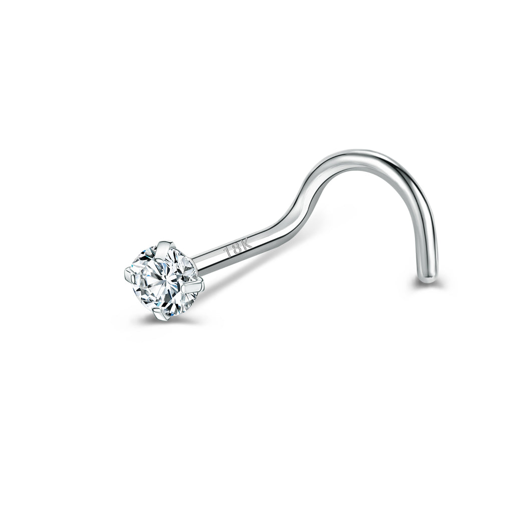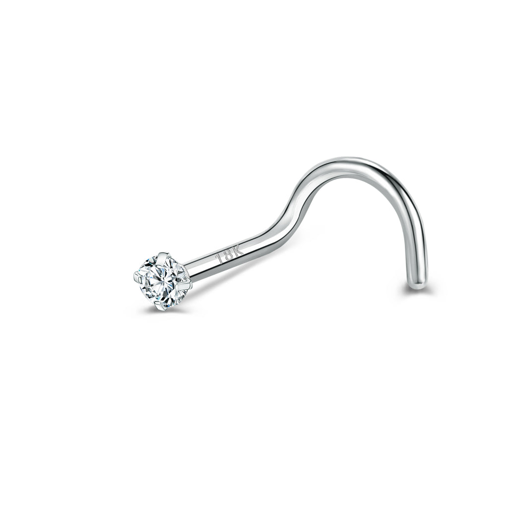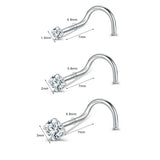 20G White Zircon Nose Studs Piercing Crokscrew Nose Rings 18K Plated Nostril Piercing
