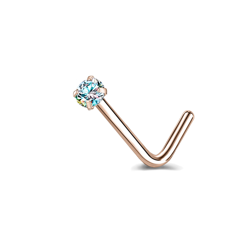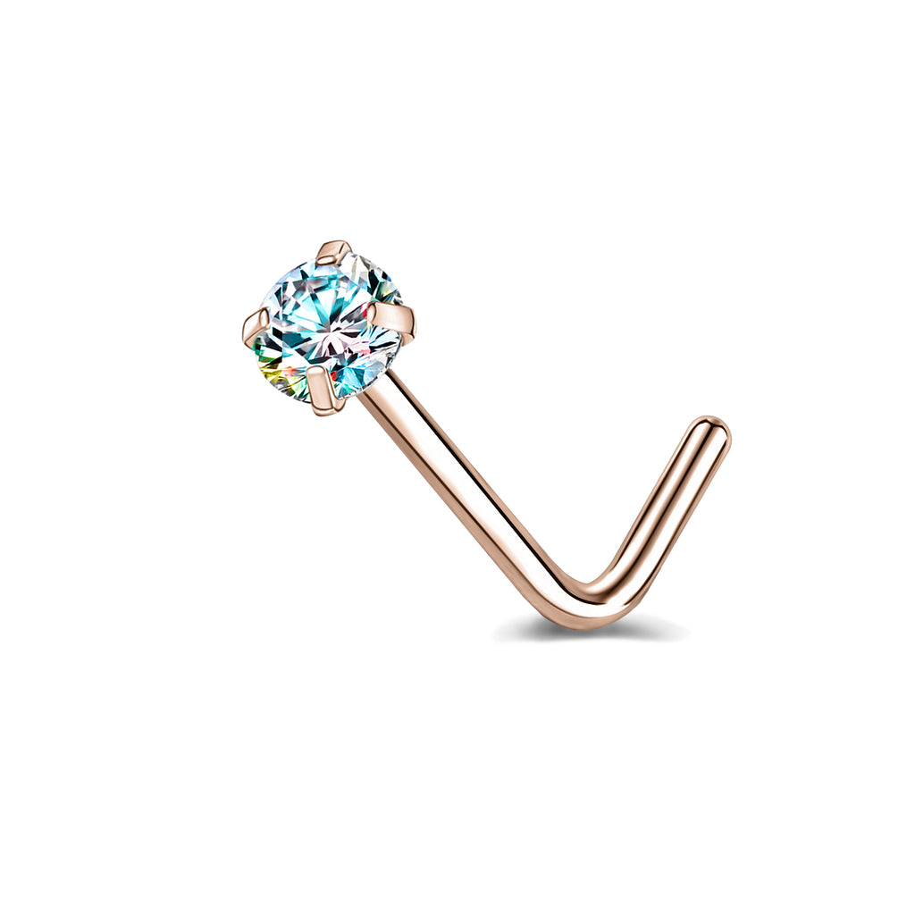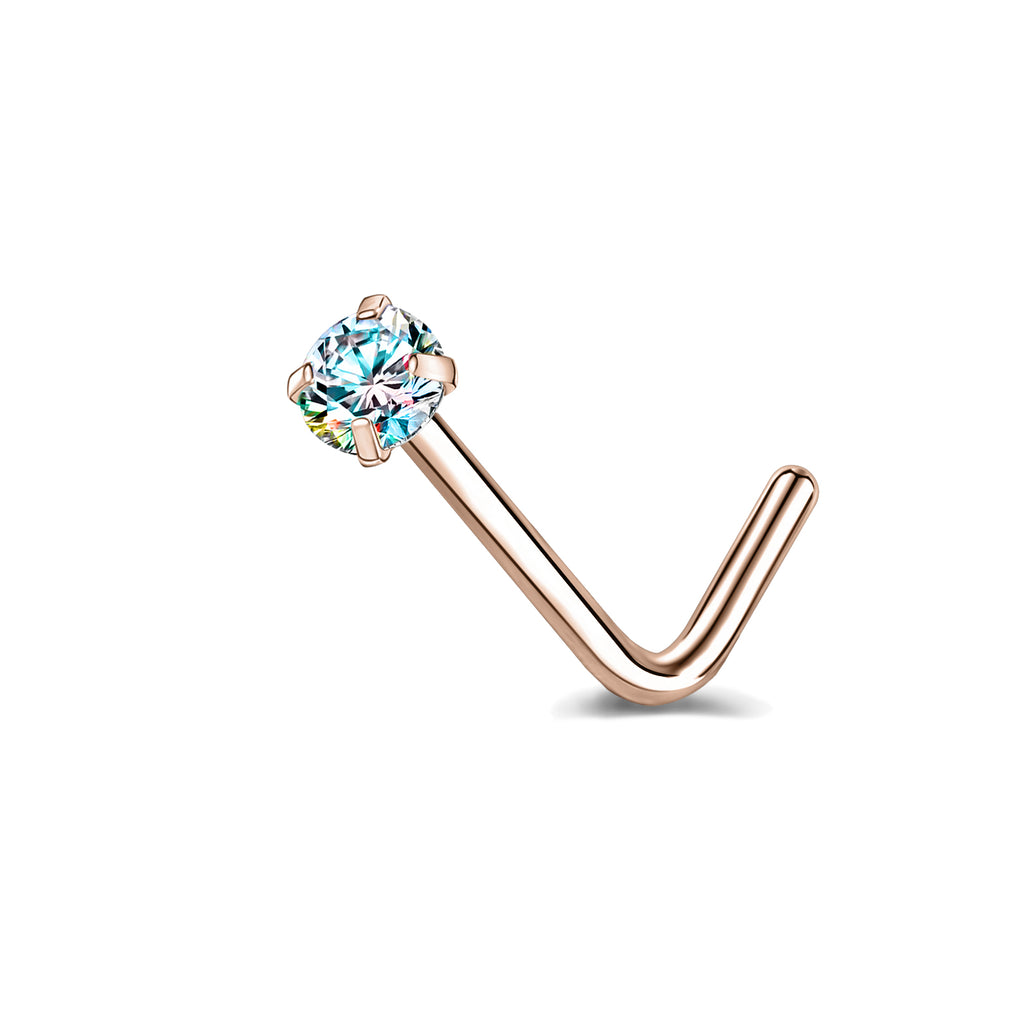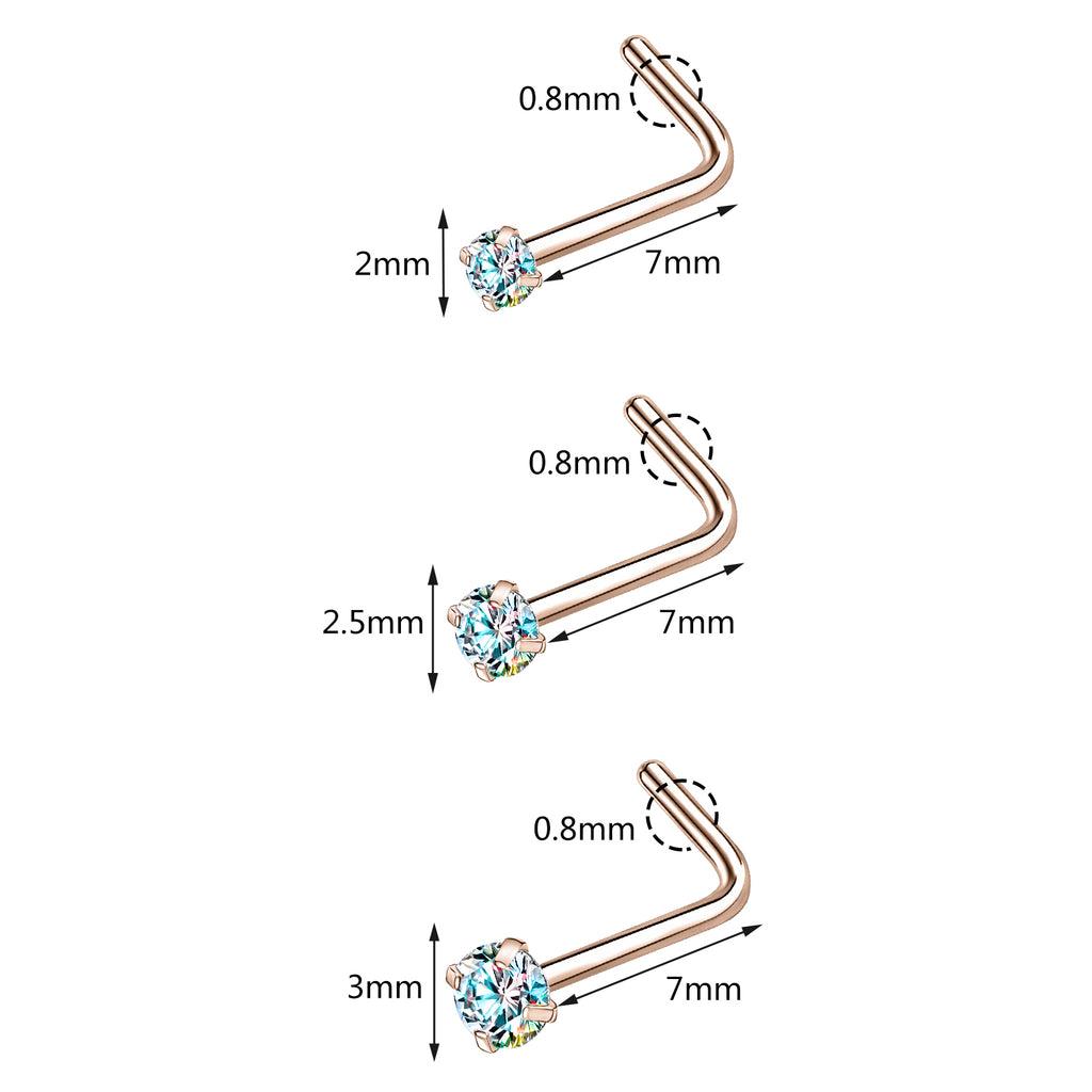 6 Pcs/Set 20G AB Zircon Nose Studs Piercing L-Shape Nose Rings Rose Gold Plated Nostril Piercing