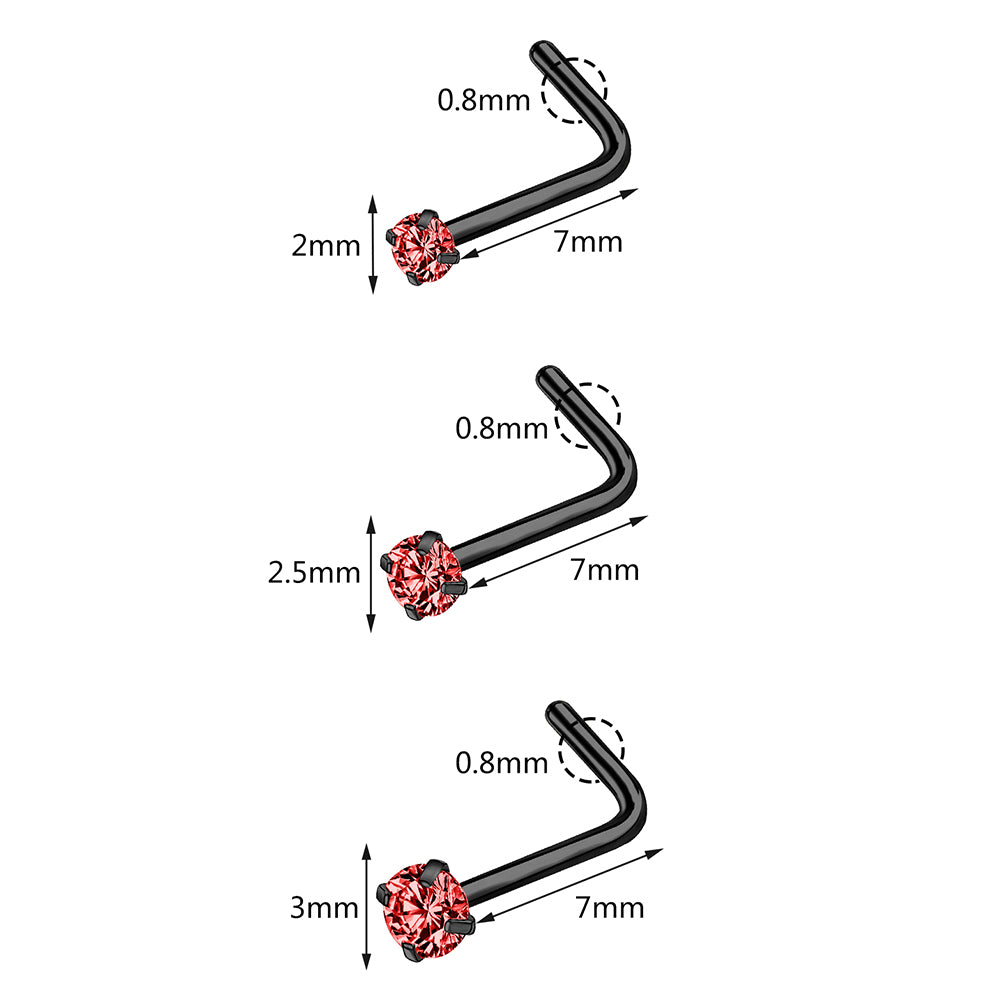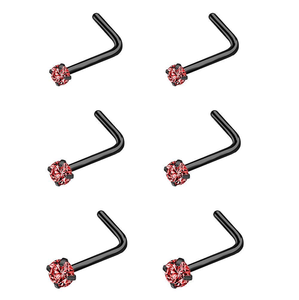 6 Pcs/Set 20G Red Crystal Nose Stud Piercing L-Shape Nose Ring Black Nostril Piercing