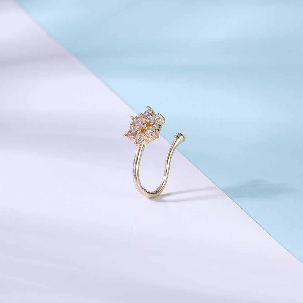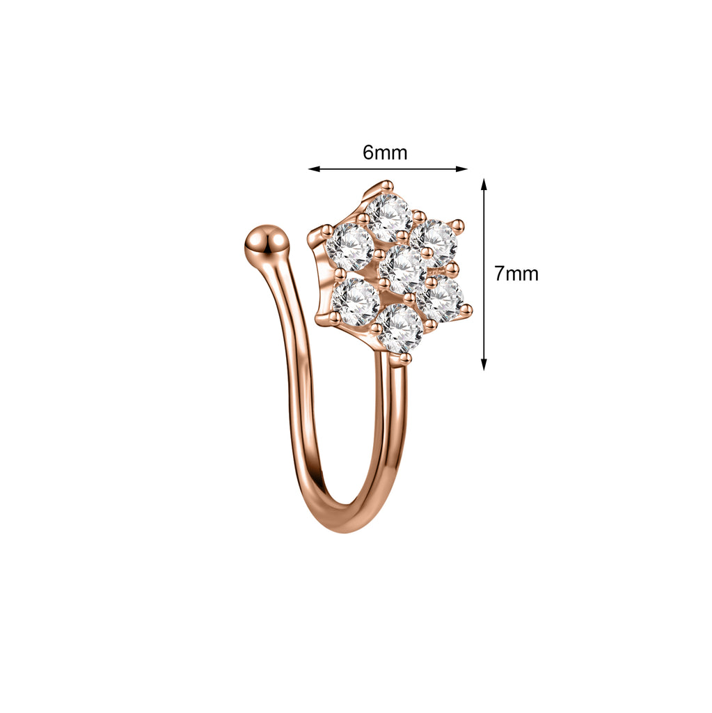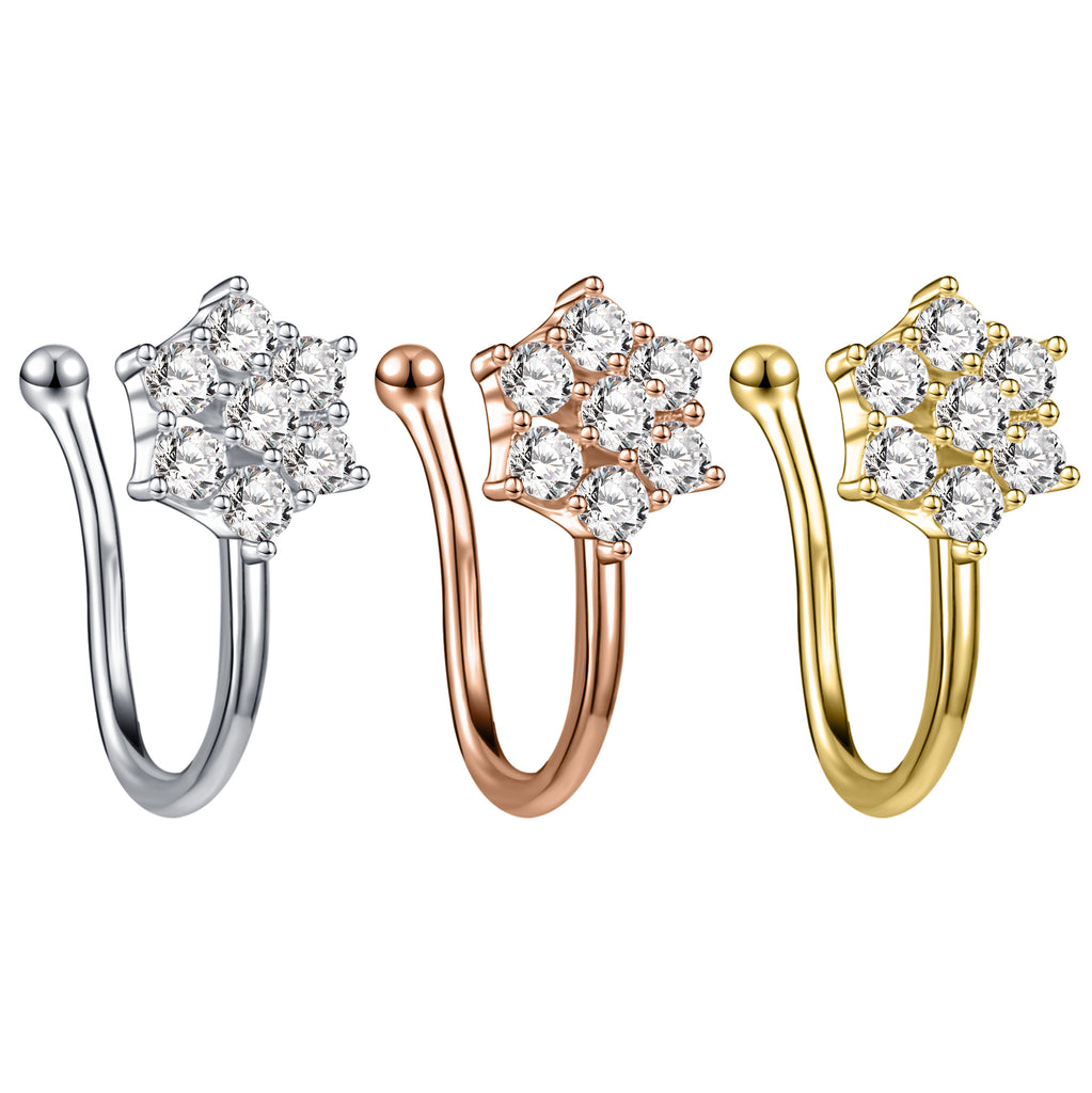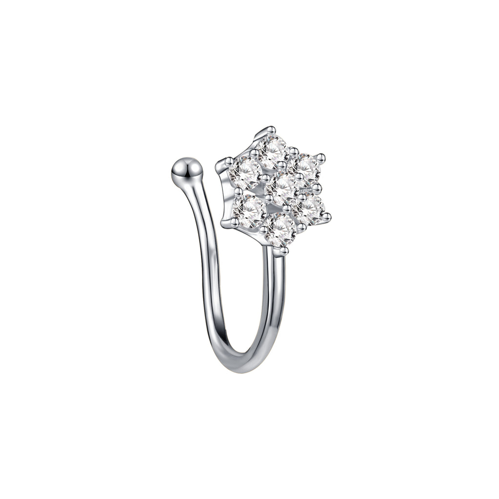 ZS White Zircon Flower U-shaped Nose Clip Simple Stainless Steel Fake Nose Ring