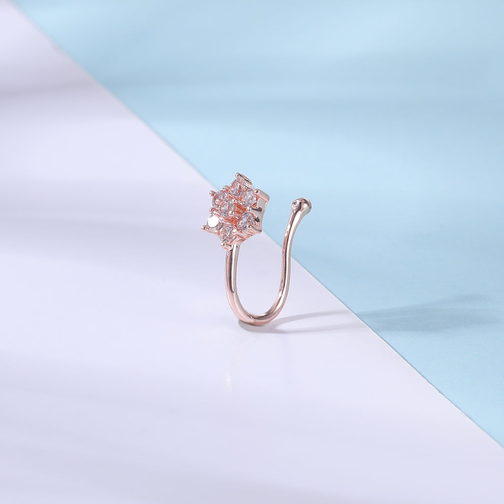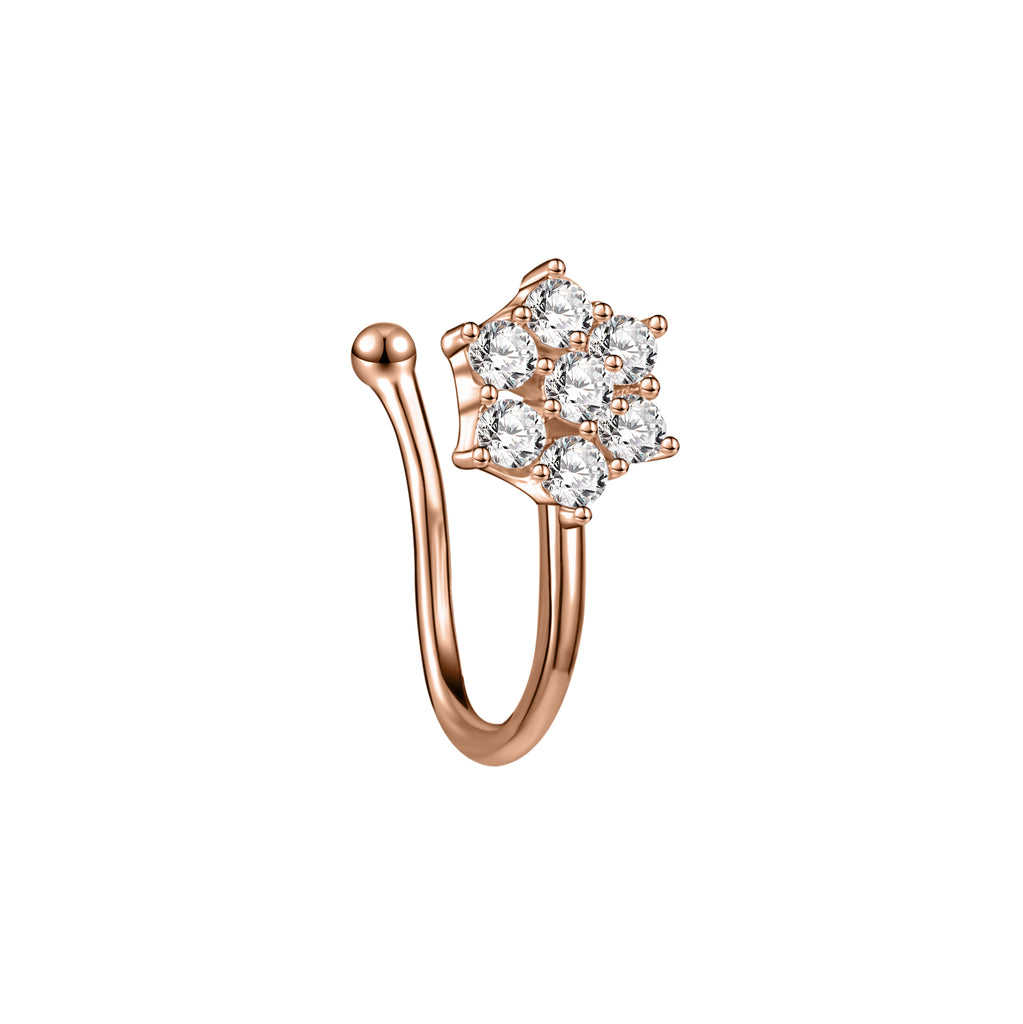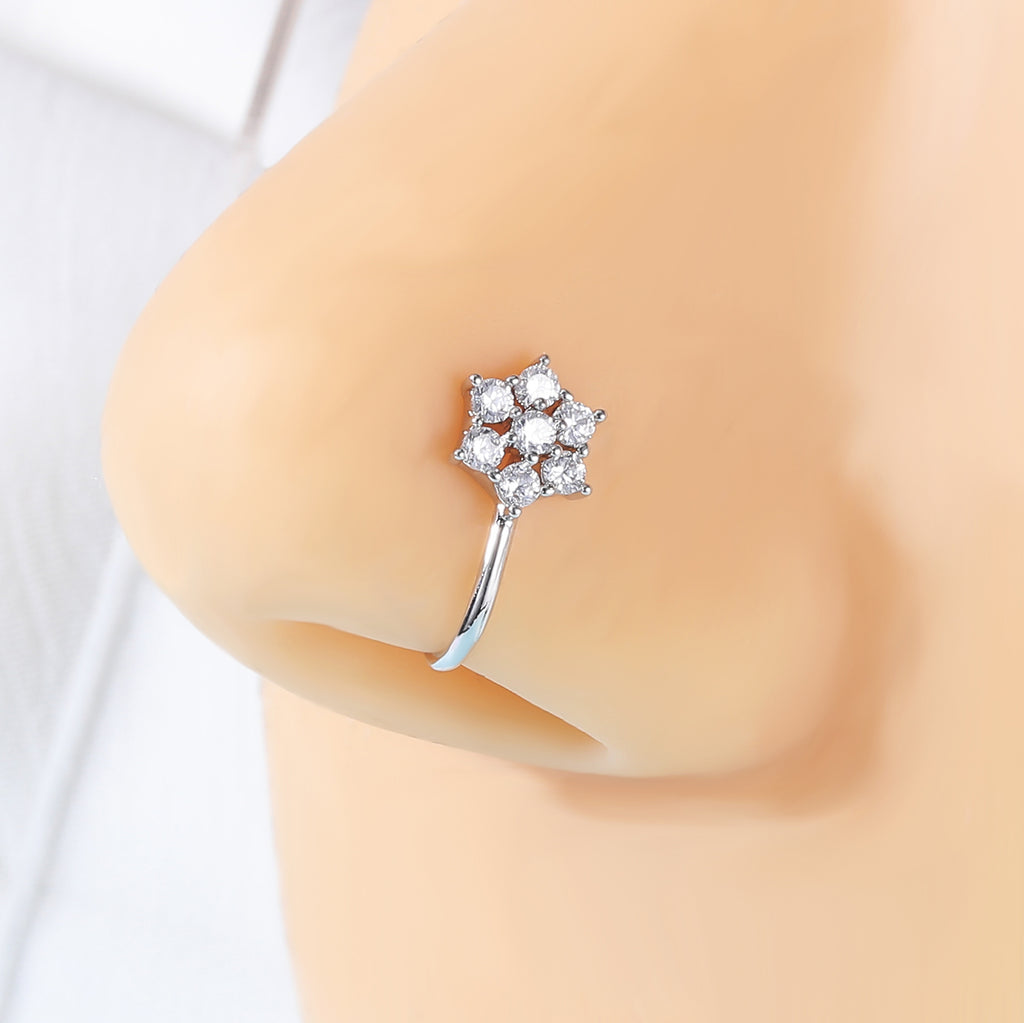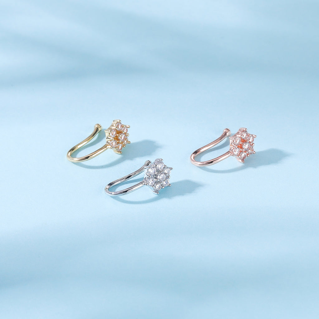 ZS White Zircon Flower U-shaped Nose Clip Simple Stainless Steel Fake Nose Ring