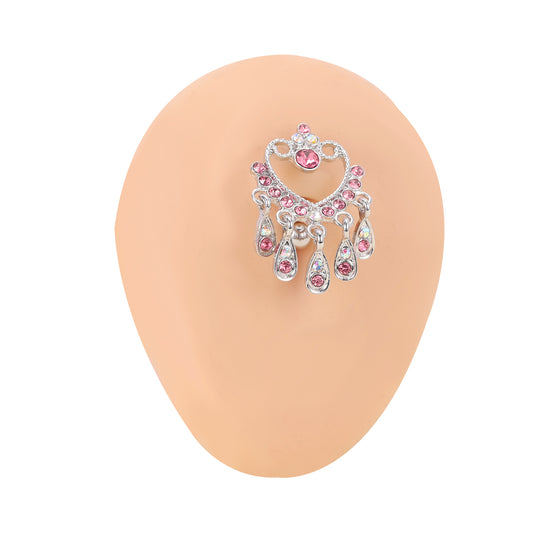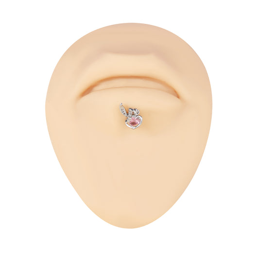 14G Heart Dangle Belly Navel Rings Pink Zirconia Belly Button Rings