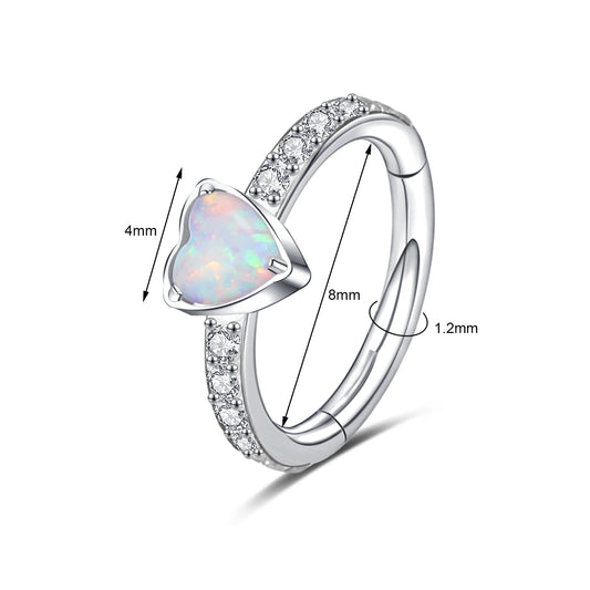 16G Heart Opal Nose Clicker Hoop Ring Crystal Cartilage Helix Piercing