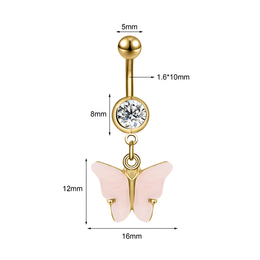Regular price From $6.79Regular priceUnit price / per$10.39Sale price From $6.7914g Butterfly Belly Button Rings Rose Gold Drop Dangle Belly Navel Piercing Jewelry