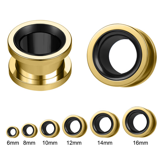 1 Pair 6-16mm Ear Plug Tunnel Double Flare Ear Gauges Black&Gold Ear Expanders