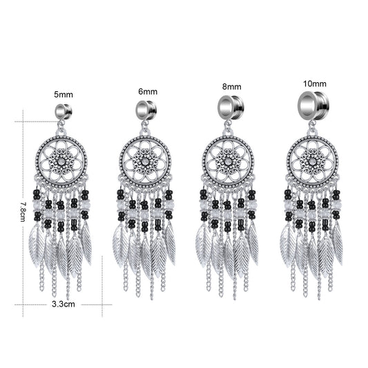 1 Pair 5-10mm Leaves Retro Celtic Style Dangle Ear Gauges Tunnels