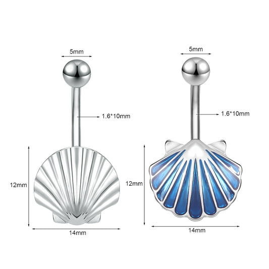 14g Blue White Shell Belly Button Rings Alloy Pendant Belly Navel Piercing