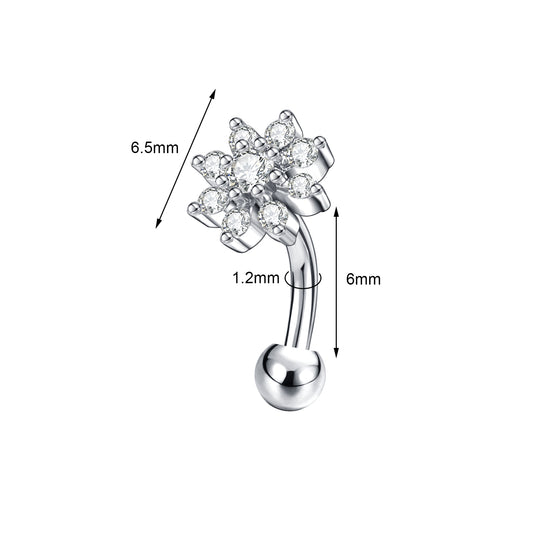 16g Flower Crystal Eyebrow Ring Piercing Barbell Curved Helix Daith Rook Piercing