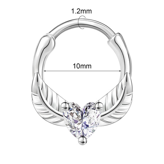 16G Leaf Septum Clicker Nose Ring Heart Crystal Cartilage Helix Piercing