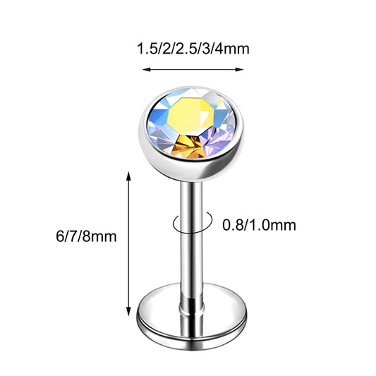 16g/18g/20g Flat Back Earring Rainbow Crystal Cartilage Earring Threadless Conch Helix Piercing