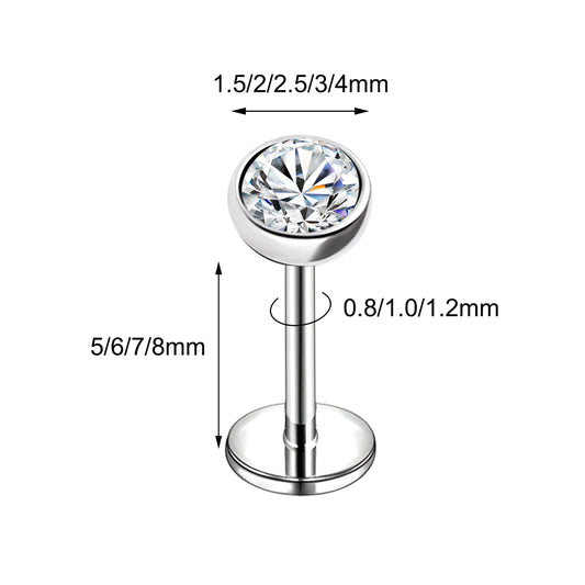 16g G23 Titanium Labret Ring Black Zircon Stud Earring Threaded Conch Helix Lip Piercing