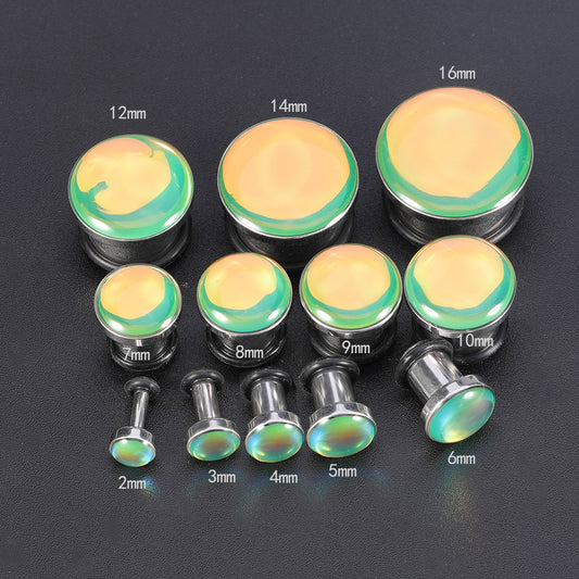 6-16mm Stainless Steel Green Changing Ear Tunnels Single Flare Expander Ear Gauges