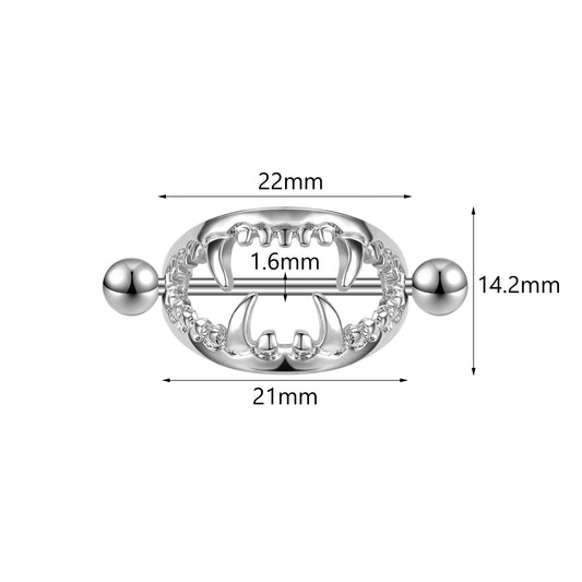 2Pcs 14G Fangs Nipple Rings Stainless Steel Nipple Piercing Barbell Jewelry