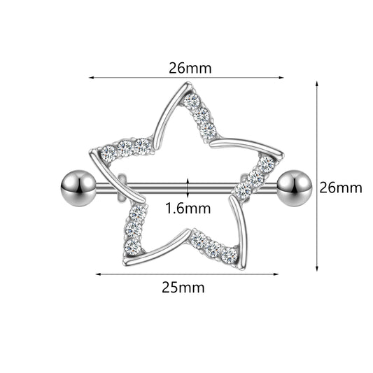 2Pcs 14G Star Nipple Rings Bling Crystal Nipple Piercing Barbell Jewelry