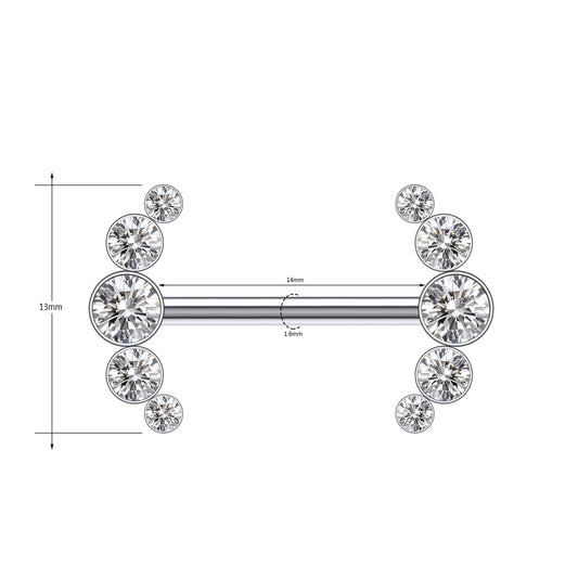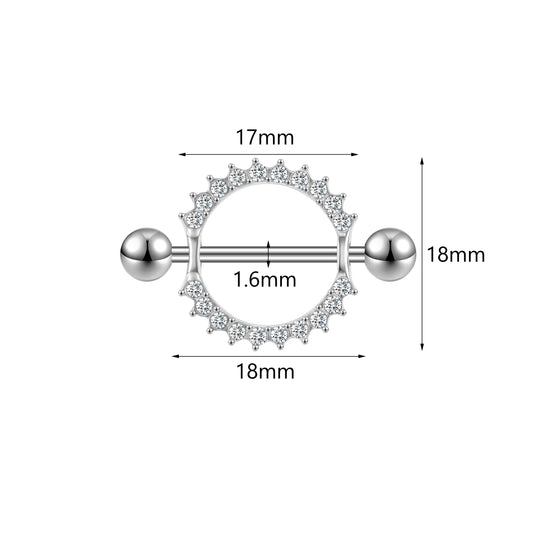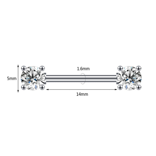 2Pcs 14G Stainless Steel Nipple Rings White Zircon Nipple Piercing Barbell Jewelry