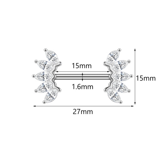 2pcs 14G Simple Nipple Barbell Ring Claw Crystal Silver Nipple Piercing