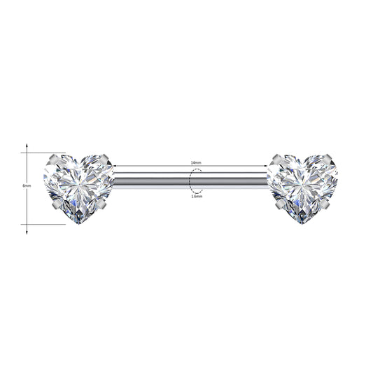 2Pcs 14G Heart Nipple Rings White Crystal Nipple Piercing Barbell Jewelry
