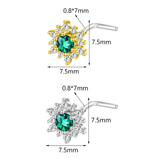 20G Green Zircon Nose Studs Piercing L Shape Nose Rings Gold Silver Plated Nostril Piercing