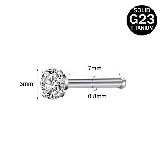 1Pc 20g G23 Titanium Nose Stud Ring Crystal Nose Bone Piercing