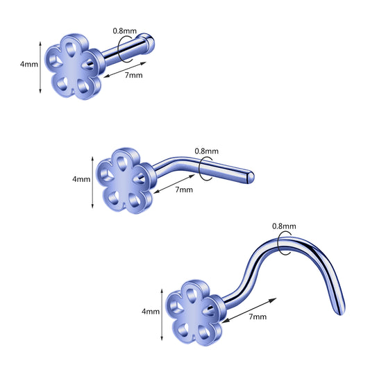 Vendor:ZSRegular price $8.69Regular priceUnit price / per$12.99Sale price $8.6920G Violet Blue Flower Nose Studs Piercing Nose Bone Shape L Shape Crokscrew Nose Rings Stainless Steel Nostril Piercing