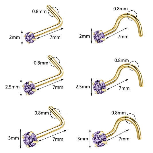Regular price $8.69Regular priceUnit price / per$12.39Sale price $8.6920g Violet Blue Zircon Nose Studs Piericng Gold Plated L Shape Corkscrew Nose Rings