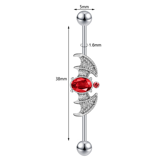 14G Crystal Bat Industrial Barbell Earring Ball Ear Helix Piercing