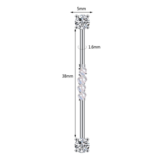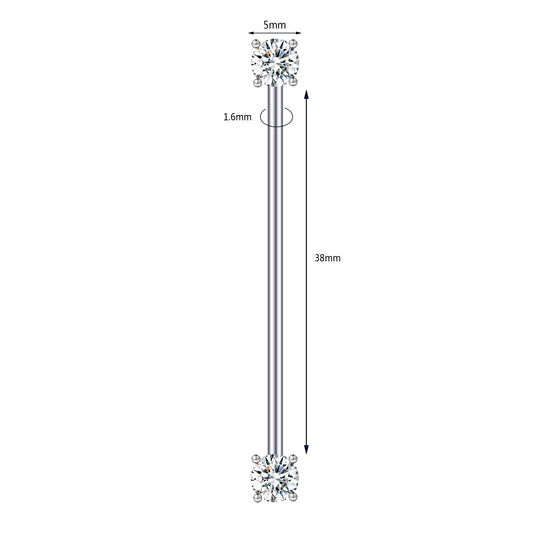 14G Simple Industrial Barbell Earring White Crystal Ear Helix Piercing