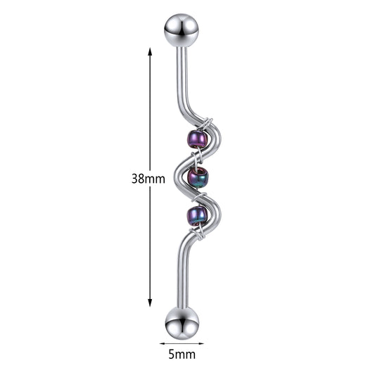 14G Curved Industrial Barbell Earring Beads Ear Helix Piercing