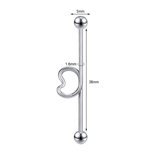 14G Heart Industrial Barbell Earring Ball Ear Helix Piercing