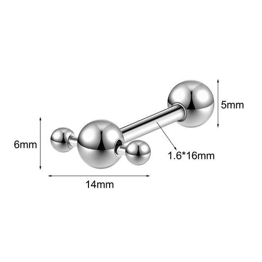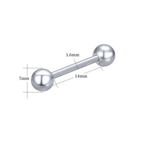 14g Steel Ball Tongue Ring Threaded Tongue Piercing Barbell Jewelry