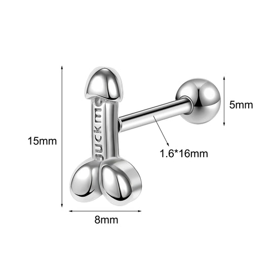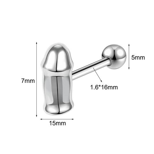 14G Middle Finger Tongue Rings Ball Tongue Piercing Barbell