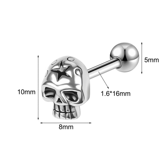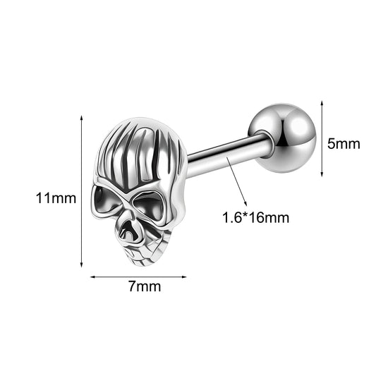 14g Skull Tongue Ring Threaded Tongue Piercing Barbell Jewelry