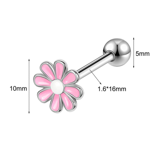 14g Pink Flower Tongue Ring Threaded Tongue Piercing Barbell Jewelry