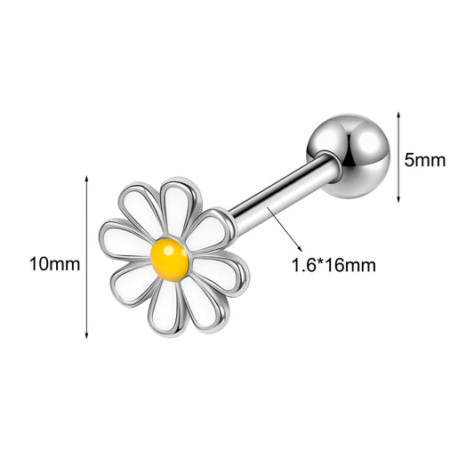 14g Yellow Flower Tongue Ring Threaded Tongue Piercing Barbell Jewelry