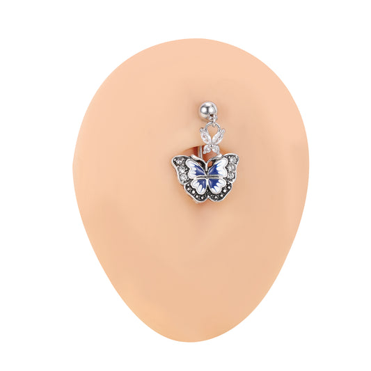 14G Butterfly Belly Navel Rings Crystal Drop Dangling Belly Button Rings