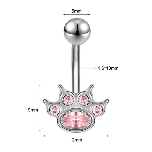 14G Cat's Paw Belly Navel Rings Pink Zircon Belly Button Rings