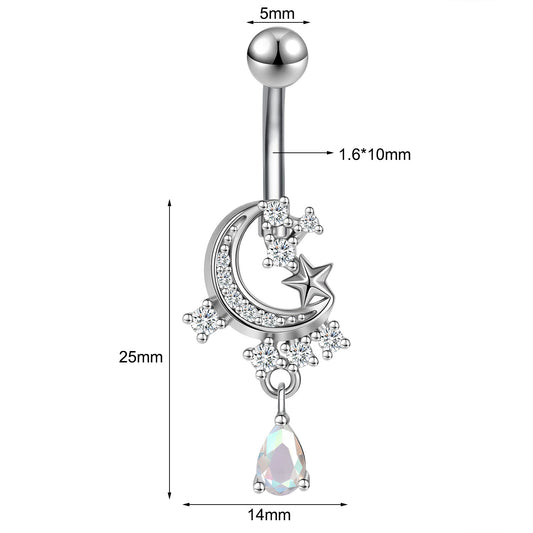 14G Moon Star Belly Navel Rings Zircon Dangle Belly Button Rings