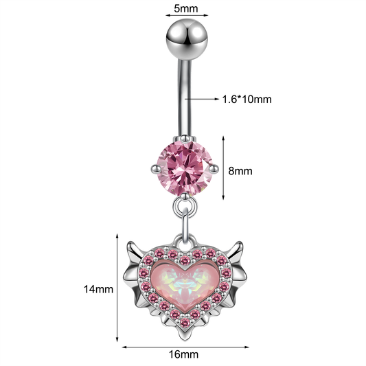 14G Heart Dangle Belly Navel Rings Pink Opal Belly Button Rings