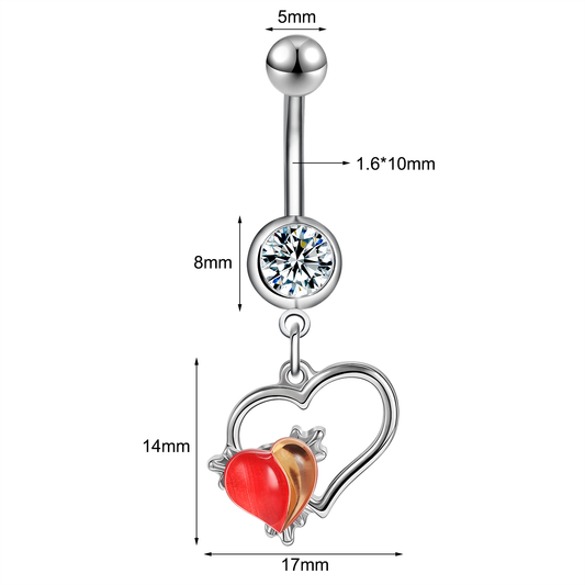 14G Heart Dangle Belly Navel Rings Bling Zircon Belly Button Rings
