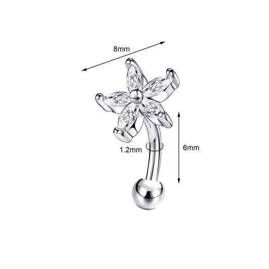 16g CZ Flower Eyebrow Ring Piercing Barbell Curved Rook Helix Daith Piercing