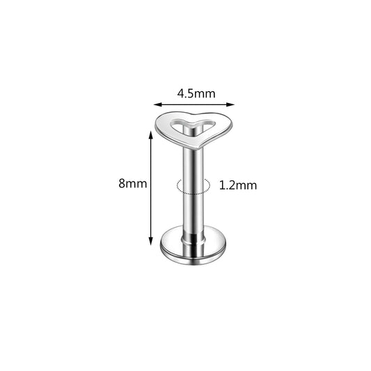 16G Heart Labret Rings Stainless Steel Tragus Helix Conch Piercing